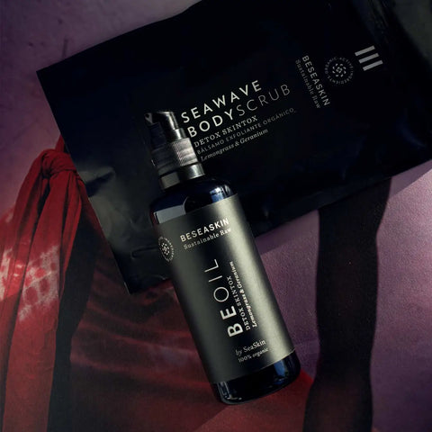 El Ritual corporal perfecto para renovar tu piel. El Set contiene Seawave Body Scrub, nuestro bálsamo exfoliante a base de Sal de Menorca y mantecas, más Beoil Detox un aceite detoxificante que activa el Firming Body, y aromaterapia de Lemmongrass y Geranio.